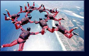 Sehr guten 4er-Teams gelingt es zum Beispiel innerhalb von 35 Sekunden über 20 verschiedene Formationen zu bilden, bevor sie danach ihren Fallschirm öffnen.